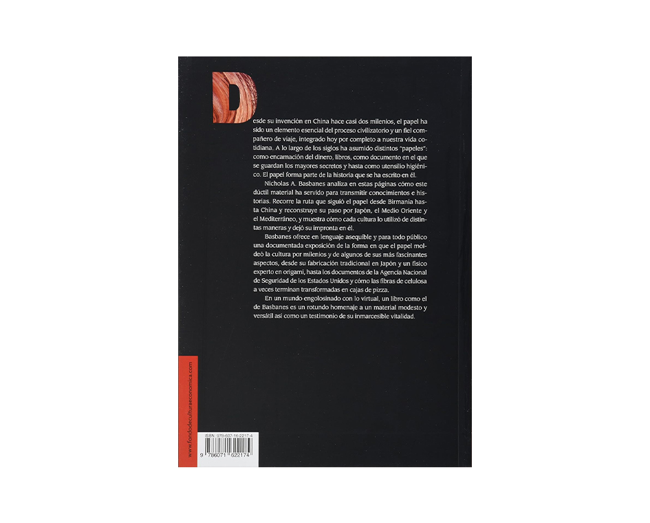 De papel. Todo sobre sus dos mil años de historia es resultado del interés de Nicholas Basbanes por estudiar el impacto que el papel ha tenido en la transformación cultural de la humanidad. Su investigación llevó al autor por todo el mundo y a través de dos milenios de historia para desentrañar relatos sorprendentes sobre un objeto que bien podríamos calificar como baladí y cuya importancia capital en nuestra vida no podemos ignorar.